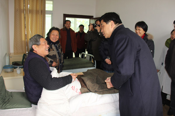 随后,孙厅长一行又来到生活基地职工医院慰问。在病房内,孙厅长看望了躺在病床上的两位退休老职工,详细询问了老人的病情,希望他们安心治疗、早日康复,并送上慰问金。在听取职工医院负责人对医院工作情况的汇报后,孙厅长指出,公司有义务也有责任让离退休职工老有所养、病有所医,职工医院要更新理念,加快改革步伐,壮大医疗技术队伍,更好地解决离退休职工医疗保健问题。