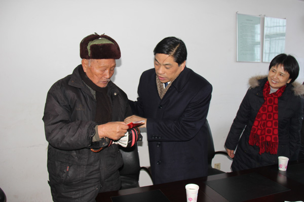 寒冬腊月,雪花飞舞。1月20日下午,水利厅党委书记、厅长孙晓山率厅人事处处长周江红、厅离退休干部处副调研员金光荣、曾三荣一行4人冒着严寒来我公司生活基地慰问离退休职工。公司董事长总经理王元旦、党委副书记王延军、生活基地管理处相关负责人陪同慰问。
