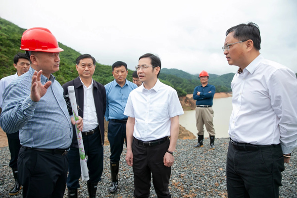 2021年5月21日上午,鹰潭市委书记黄喜忠深入由我集团承建的贵溪市塘湾水库除险加固工程进行实地调研,指导在建工程防汛备汛。塘湾水库坝址以上控制流域面积22.6平方公里,总库容1321万立方米,灌溉面积1.43万亩,电站装机容量320千瓦。塘湾水库除险加固工程于2020年11月开工建设,目前在各参建单位共同努力下,按计划稳步推进,主体工程有望在合同工期内完工。黄喜忠登上水库大坝,实地查看了项目建设进展情况,并对水库加固工程建设工作提出明确要求。他指出,要在确保质量和安全的前提下,加快推进项目建设,确保早日建成见效。黄书记强调,各参见单位在工作中要坚持人民至上、生命至上,切实把确保人民生命安全放在第一位落实。