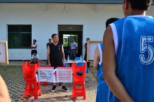 金滩镇党委书记京海华宣布“江西水建杯”篮球赛开始