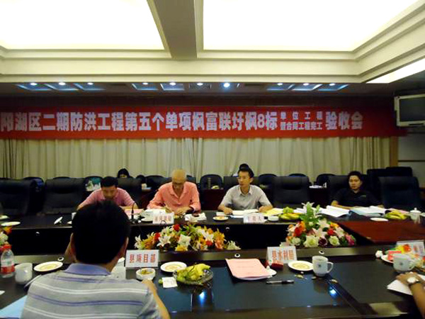 2012年9月27日~28日,江西省河道湖泊管理局在余干县主持召开了江西省鄱阳湖区二期防洪工程第五个单项枫富联圩枫8标及第六个单项康山大堤康1标、康2标、康3标的单位工程暨合同工程完工验收会议,并通过了枫8标、康1标、康2标、康3标单位工程暨合同工程完工验收。验收会上,省河湖局郭泽杰局长充分肯定我公司在较短时间内顺利完成上述项目所作出的努力,第五个单项枫富联圩封闭圈圆满结束,为鄱阳湖区人民正常生活生产作出了贡献。