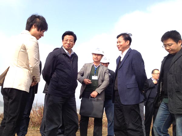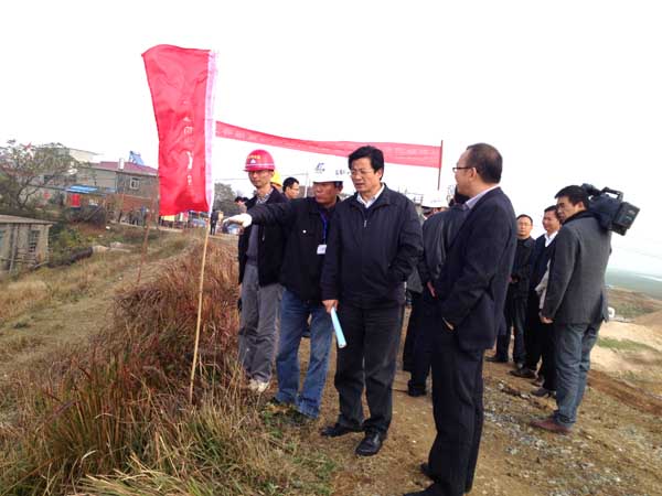11月18日,九江市副市长赵伟一行来到我公司承建的星子县蛟塘防洪工程工地检查指导工作。赵副市长在施工现场听取了我公司施工负责人关于工程进度、质量安全、下一步工作计划的简要汇报后,对我项目部前期开展的工作表示了充分的肯定。他指出,由于开工推迟,时间紧,任务急,一定要发挥水利一级资质施工企业的优势,在加强工程质量管理的同时,加快工程的进度,科学安排,保证时间节点,确保明年工程能安全渡讯。