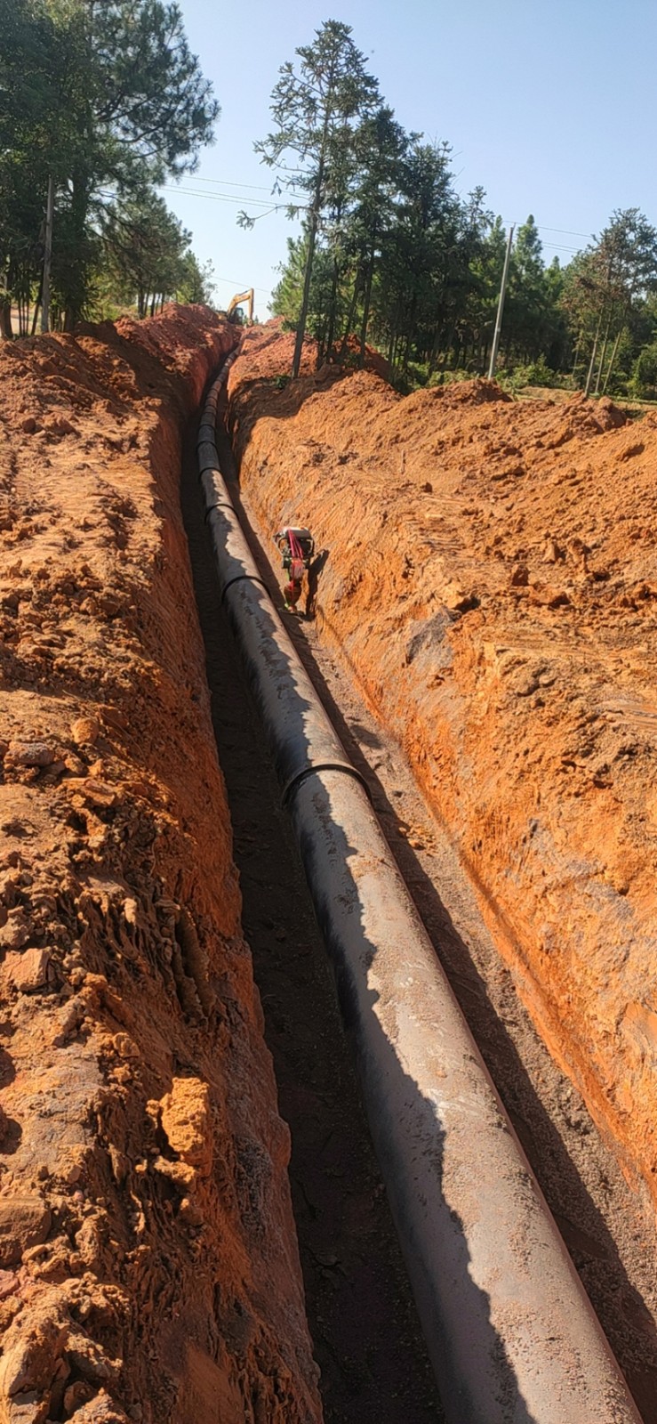 集团承建的鹰潭市余江区城乡供水一体化一期项目南、北线供水主管网铺设工程位于鹰潭市余江区,主管总长75.3km,合同投资10473.3万元,合同工期174天。该项目面临时间紧,任务重等重重困难,为顺利推进项目建设,施工项目部人员争分夺秒,昼夜奋战,抓住晴好天气,抢抓施工进度,确保工程按时完工。