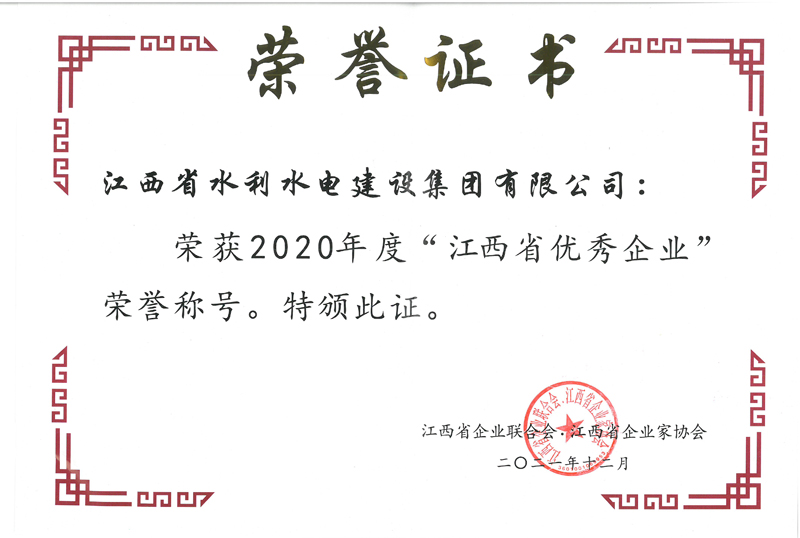 近日,江西省企业联合会、江西省企业家协文件《关于表彰“2020年度新时代江西杰出企业家、江西省优秀企业、江西省优秀企业家、江西省优秀厂长(经理)”的决定》公布了2020年度江西省优秀企业等奖项的评选结果。集团获评江西省优秀企业;集团董事长王元旦获评新时代江西杰出企业家;集团常务副总裁王俊华获评江西省优秀厂长(经理)。至此,集团已连续二十二年被评为“江西省优秀企业”。荣誉是一种肯定,更是一种责任,集团将以此为动力,新的一年再接再厉,继续以优秀水利龙头企业的标准严格要求自己,不断超越自我,开创企业发展多元化新格局,持续提高市场竞争力和社会影响力。