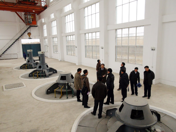 验收代表与专家察看排涝站电机层