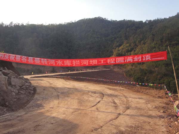 我公司2010年5月中标承建的云南省普洱市景谷县曼转河水库拦河坝工程历时950余日历天,于2013年1月15日圆满完成大坝封顶,标志着该项目的主体工程基本完成。 曼转河水库拦河坝工程为粘土心墙风化料坝,最大坝高75.5米,2010年5月31日正式开工建设,总投资7859万元。