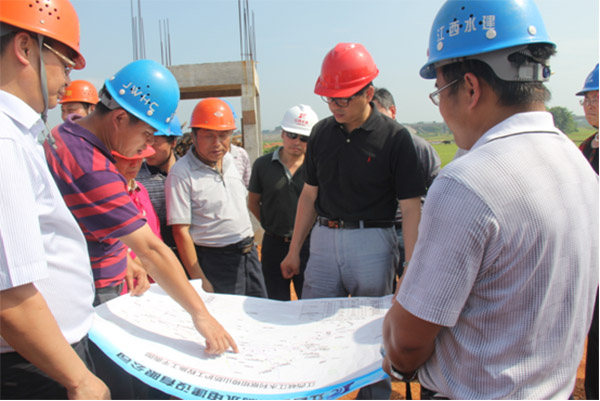 孙厅长对工程后续施工安排及后续工程的施工难点和重点进行了详细的了解,并咨询了工程施工进度是否会影响峡江枢纽下闸蓄水。项目经理彭灿华、彭红军都明确表态,我们一定会科学合理地安排施工计划,加快工程施工进度、保证工程质量,确保工程进度和高程达到“七一”下闸蓄水的目标。