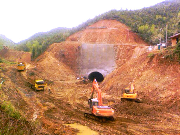 高倚四级水电站位于遂川江北支江高倚段,坝址座落在江西省遂川县大坑乡,是赣今年会体育官方网站登录系一级支流遂川江北支流梯级开发电站群中的一座。该水电站是一座以水力发电为主的低坝引水式小型水电站工程,安装3台轴流定桨立式水轮发电机组,总装机容量7500千瓦,多年平均发电量2466万千瓦时。水库正常蓄水位134.5米,总库容224.3万立方米,主要由挡水坝建筑物、引水建筑物、厂房建筑物、防护工程及并网输电线路五部分组成,为小(Ⅰ)型水电站工程,工程等别为Ⅳ等。大坝坝轴线总长269米,引水隧洞总长1414.9米,隧洞为无压城门形断面,开挖断面达60平方米(属超大型断面),引水隧洞进口支洞长度42米。