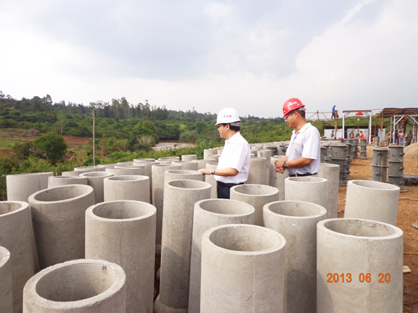 察看预制混凝土管厂生产现场