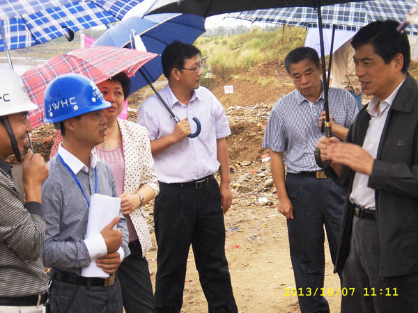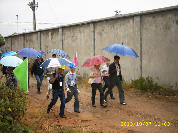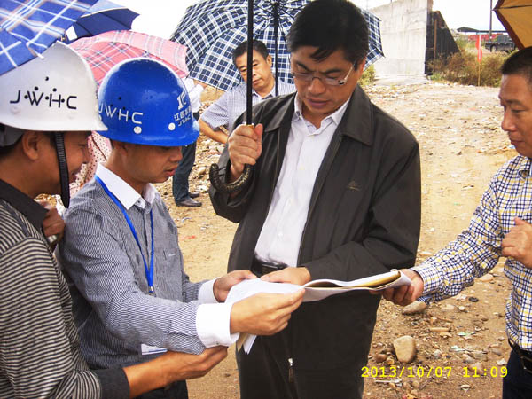 孙厅长一下车直奔工地施工现场,并主动与现场施工人员握手。当走到防洪墙施工现场时,孙厅长停住脚步,听取完施工情况汇报后,他对驻守在施工现场的参建各单位及个人表示问候,祝大家国庆节日快乐,他要求各单位再接再厉,按省五河办的相关部署确保按期完工。最后,孙厅长要求各单位把好质量和安全关,确保工程完工不出任何事故。