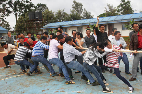 为了凝聚精神,交流感情,2014年12月25日,肯尼亚分公司第一届迎新联谊会在双河正式举办。本次联谊会共设拔河、篮球、CS三项团体比赛项目,乒乓球、象棋、升级三项个人比赛项目及趣味套圈项目,肯尼亚办事处及各在建项目均组队参加了比赛。
