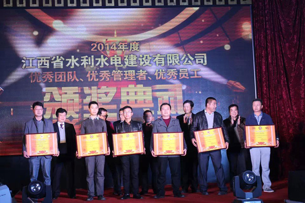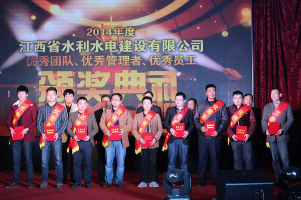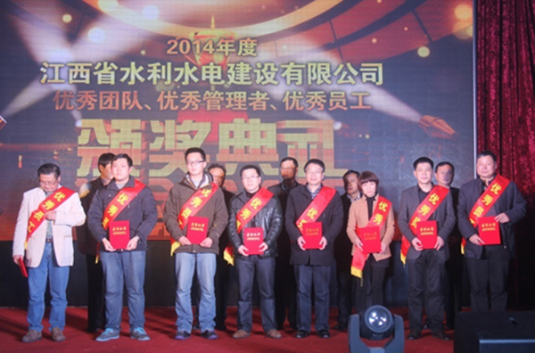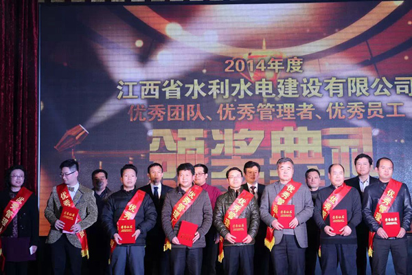 随后,公司总经理徐洪良宣读了2014年优秀表彰决定,并与公司领导班子一起,为双河二期项目部等6个优秀团队、肖凯等10位优秀管理者和周家煌等23位优秀员工进行颁奖。徐总要求,希望受到表彰的先进集体和个人积极进取、再接再厉,以更加昂扬的斗志投入到今后的工作中,创造出更加辉煌的成绩;希望各单位和广大员工以优秀团队和先进个人为榜样,加强学习,开拓创新,锐意进取,为江西水建灿烂的明天而努力工作!