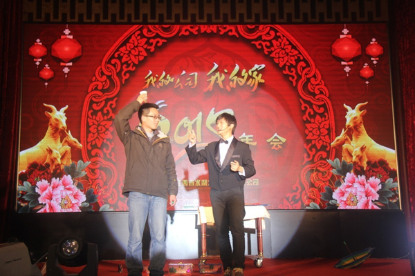 年会在喜庆的氛围下拉开序幕,公司董事长王元旦发表了热情洋溢的新年贺词,并代表公司董事会向全体员工及家属,向关心公司发展的社会各界朋友致以新春的祝福。回顾2014年,王董事长指出,在公司董事会的正确领导下,全体员工上下团结一心,攻坚克难,发奋有为,顽强拼搏,扎实工作,各项工作取得了令人鼓舞的成绩,公司朝着质量好、品牌优、信誉高、市场广的集团型企业方向迈进。展望2015年,王董事长表示,公司将继续围绕“一个系统,五大平台”建设为工作重心,不断改革创新,开拓进取,以更加强烈的责任担当、更加务实的工作作风、更加饱满的工作热情,团结一心,同心同德,在实现公司梦的征程上阔步前行!王董事长热情洋溢的讲话,获得了现场的阵阵掌声。