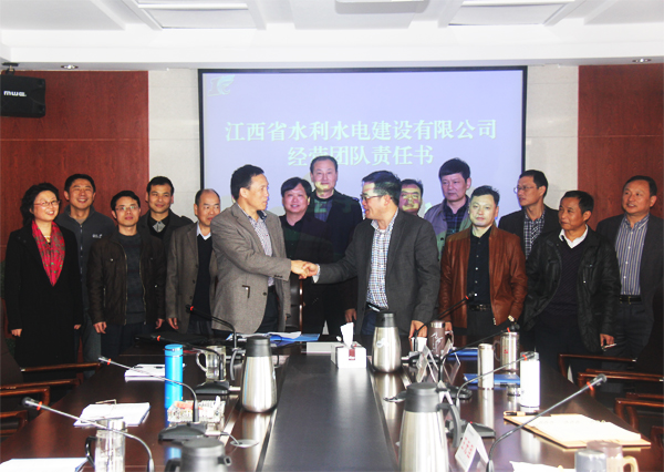 2015年4月11日,江西省水利水电建设有限公司2015年度国内经营团队业绩责任书签字仪式在公司总部星河国际22楼会议室举行。公司总经理徐洪良分别与公司经营层高管、部门负责人签订了2015年度国内经营团队业绩责任书。 本次责任书的签订,是公司首次量化考核指标,将经营管理者的利益和企业的经营效益挂钩,为推进公司2015年各项经营管理工作的顺利开展奠定了基础。