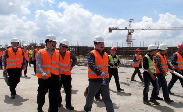 上午11时,董事长王元旦一行在双河二期会议室召开会议。项目经理彭红军、廖会文分别作了项目施工管理工作报告,详细汇报了近期施工管理和项目进展情况。王元旦董事长首先对施工质量和项目进展的总体情况表示满意,同时也告诫大家,成绩只能代表过去,要继续发扬不骄不躁、脚踏实地的优良作风。董事长特别强调,质量和安全是企业的命脉,要始终把质量和安全放在首位,进一步加强质量控制管理,加大力度排除施工现场的安全隐患,提高员工的安全意识,把质量控制和安全管理落到实处。项目班子表示,在公司领导的关心和支持下,项目部对双河项目的圆满完成更加充满信心。