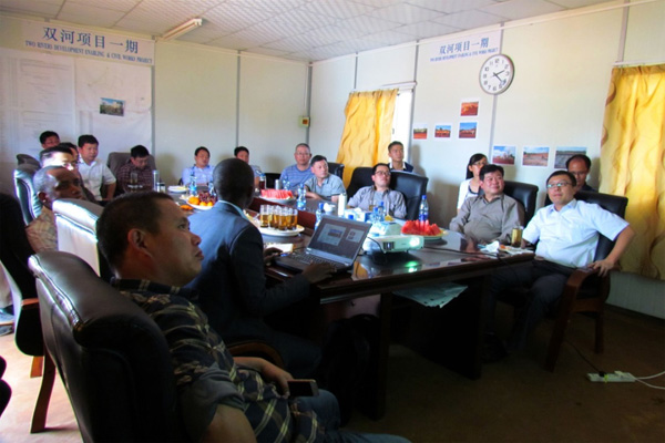 2015年4月15日上午,公司董事长王元旦、总经理徐洪良、总经济师孙八根、副总经理黄郑民及股东代表一行十三人在公司肯尼亚分公司贺翔总经理的陪同下,前往肯尼亚双河项目施工现场进行视察。