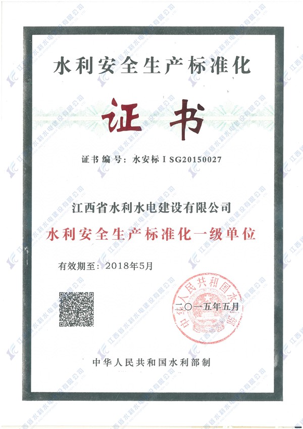 2015年6月,我公司顺利通过水利部安全生产标准化一级单位的最终评审,获得“安全生产标准化一级单位”证书,标志着公司安全生产首先迈入了“标准”时代。