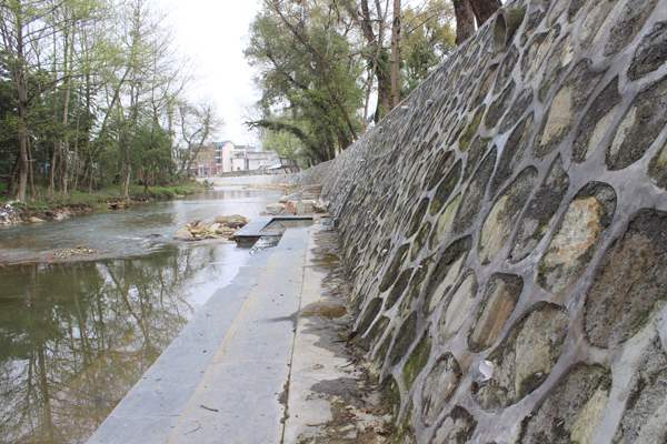 玉山县樟村镇防洪工程的施工主要内容有:堤身土方填筑;左、右岸堤身防护(埋石砼防洪墙、干砌石护坡、浆砌石护坡、草皮护坡)、河道疏浚、涵闸及交通桥拆除重建等四座建筑物改建工程。