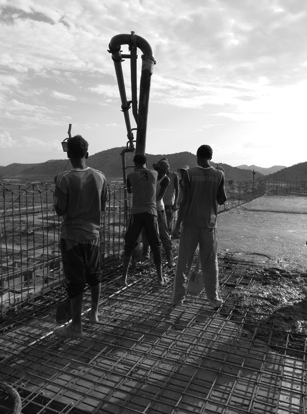该项目位于接近赤道的埃塞俄比亚南部,素以气候炎热而著称,施工条件颇为艰苦。施工过程中,项目部成员每天早出晚归,常常一站就是一天,二十四小时连班也是家常便饭。在主厂房接近封顶的关键时刻,项目部全体员工有的夜里跟随混凝土罐车执行押车任务,有的深夜依然坚持在浇捣一线指挥作业,连续奋战数日,终于完成封顶大任。