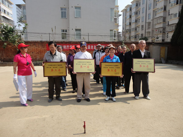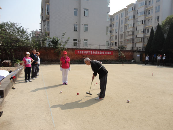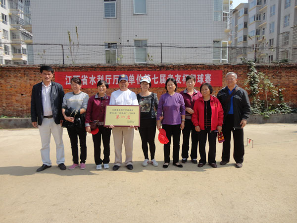 2015年10月28日,我公司门球代表队参加了江西省水利厅厅直单位第七届“老友杯”门球赛,本次比赛由江西省水利厅离退休干部处主办、江西省水利水电建设有限公司承办,厅直单位共4个代表队参加。经过紧张激烈的角逐,我公司门球代表队荣获本次比赛团体组第一名。 公司门球代表队是一支由离退休职工组成的队伍。在赛场上,他们团结一致、密切协作、敢打敢拼,展现了江西水建人良好的精神风貌和不懈奋斗、顽强拼搏的风采。