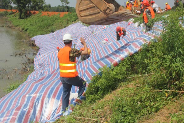 本次演练是以贵溪市新田联圩防洪工程施工项目所在地连日持续大雨天气,引发罗塘河河水暴涨,导致桩号K10+247~K11+000段大堤出现塌方、开裂现象,启动防汛应急预案为背景,开展的防汛演练。演练科目包括:险情报告、启动应急预案,组织应急救援队伍投入抢险,堤脚抛石固脚、堤身砂卵石及土方填筑、堤身迎水面铺设防冲彩条布、编织袋装砂石堤身加固等内容。演习完成后,参与演习的主要成员,对本次演习效果进行了评价,为公司《防汛应急预案》的修订完善作了充分的基础工作。