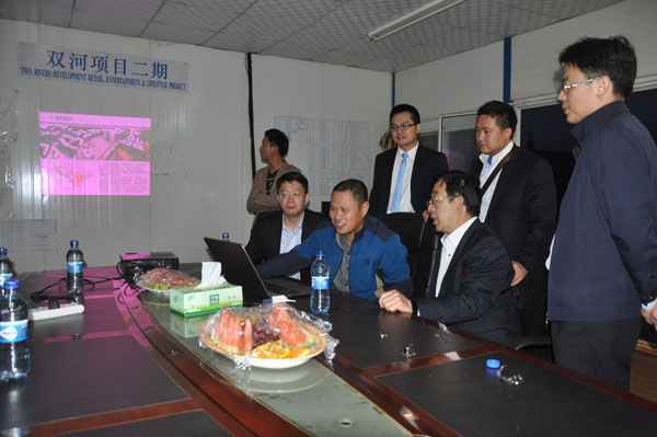 2016年7月22日,中非基金董事长迟建新一行,考察我司投资并参建的双河项目。迟董事长对双河项目表现出极大的兴趣,不仅实地察看了双河购物中心,还亲临项目部营地,听取有关双河项目建设及招商情况汇报,并就双河项目投资收益及后续开发事宜与我司人员进行了交流。