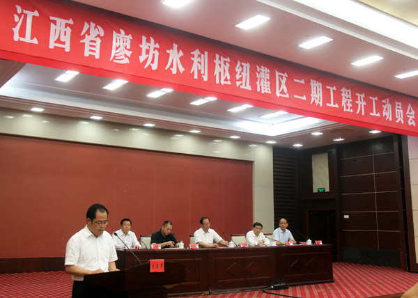 公司总经理徐洪良代表项目参建单位在会上作表态发言,江西水建是一个有着六十年光荣历史的江西省水利施工龙头企业,多年来与抚州人民结下了深厚的感情,也为抚州的水利事业做出了突出贡献,我们将继续发扬水建人“不怕苦,不怕累,能打仗,打胜战”的精神,精心组织,科学规划,严格管理,将廖坊水利枢纽灌区二期工程项目建设成经得起历史检验,造福老百姓的精品工程!