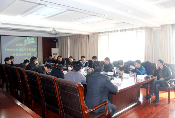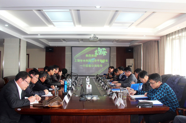 2月15日,上饶市水利局副局长江华平一行来公司就企业改制工作进行调研。公司董事长王元旦、总经理徐洪良、党委书记王延军、副总经理兼江西海外公司执行董事张周平、副总经理曾朝文等一同参加了调研座谈。