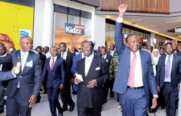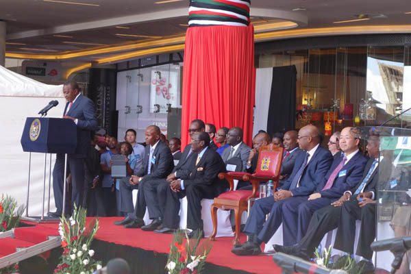 下午15时,激动人心的时刻到了!在万众瞩目中肯雅塔总统亲自剪彩,并发表了重要讲话,他对中国公司实现了肯尼亚人的梦想给予了充分肯定。双河投资项目系由肯尼亚上市公司CENTUM集团主导,江西省水利水电建设有限公司与中航国际工程公司强强联合共同参与投资建设的重大项目。我司驻肯尼亚双河项目部在项目经理彭红军率领下,精益求精,严把质量关,克服了时间短、任务重的困难,仅用了两年半时间即完成商场项目建设任务,创造了东非速度!