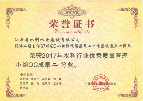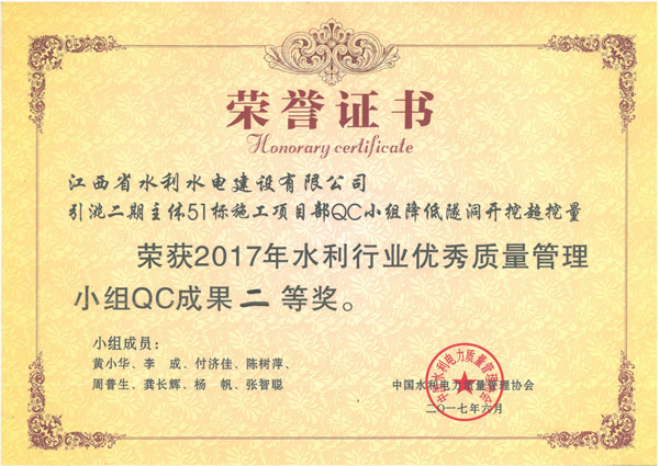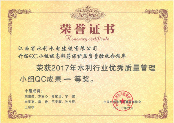 近日,中国水利电力质量管理协会水利分会在湖南省长沙市,举办了2017年水利行业优秀QC小组成果发表会,并在本次发表会上发布了206项QC成果。本次成果发表会上,我公司发表的4项QC成果中, 1项QC成果获一等奖,2项QC成果获二等奖,1项QC成果获三等奖。公司已连续3年获得水利行业优秀QC小组成果奖。