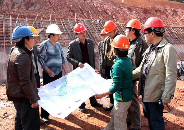 2013年11月20日下午,省水利厅副厅长文林一行到我公司承建的柘塘防护工程检查并指导工作。