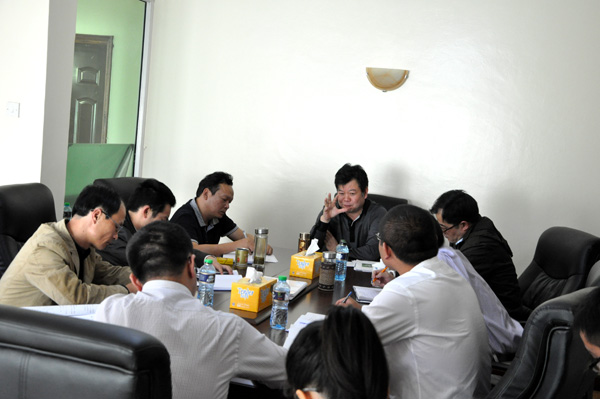 董事长兼总经理王元旦一行抵达我公司驻肯尼亚分公司办事处后,立即召开了海外工作会议。会上,在肯主要管理人员就市场开发、工程建设等工作情况进行了详细汇报,副总经理徐洪良、黄郑民分别进行了发言。王总在会上做了总结讲话,他对肯尼亚分公司取得的成绩给予了充分肯定,对在肯发展形势表示了充足的信心。首先,他指出,肯尼亚分公司是一支团结、有战斗队的队伍,要通过不断学习挖潜,打造一支成学习型团队。其次,他要求肯尼亚分公司要高标准建好在建工程。通过做好双河房地产项目展示公司实力,通过水电枢纽项目拓展公司发展方向,为公司海外发展战略调整提供机会,力争在2~3年内把肯分公司壮大,做成亮点。最后,他强调要高度重视海外项目税务工作,他认为这是海外项目最后营利的关键,项目管理要与财务相结合,同时要处理好与合作伙伴关系。