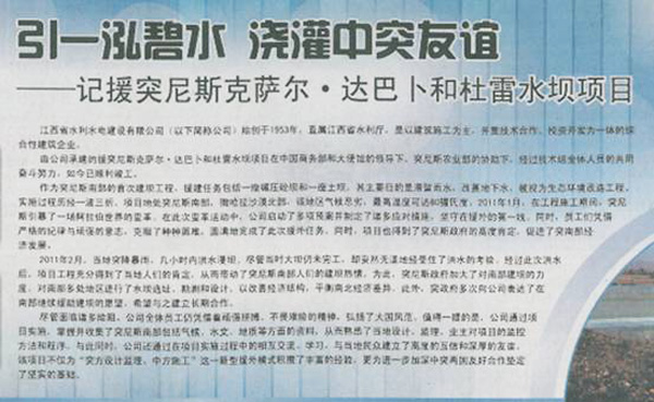 由公司承建的援突尼斯克萨尔•达巴卜和杜雷水坝项目在中国商务部和大使馆的领导下、突尼斯农业部的协助下,经过技术组全体人员的共同奋斗努力,如今已顺利竣工。