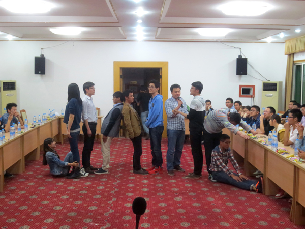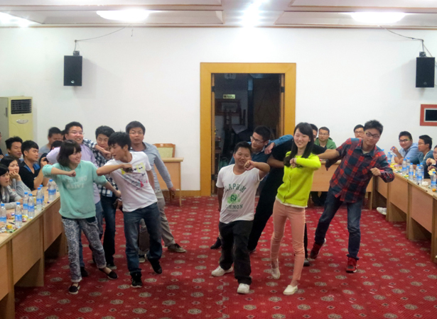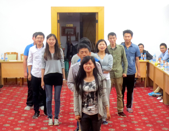 4日下午,大家抵达庐山西海景区宾馆后,全体人员进入整队分组环节,推荐队长和政委,选好队歌,设计队名、口号和LOGO,为增强队员间的沟通协作能力,要求各组利用下午的时间排练出一个晚会节目。各组队员们顾不上休息,立刻进入了紧张的策划和排练中。晚上7点半,五四青年节文艺晚会正式开演,“Dream night队”“青春梦想队”“超越队”等名字纷纷闪亮登场,“我的名字叫青春,我的青春在水建”,“舞动青春,展现自我,放飞梦想,拥抱明天”,“超越梦想,怒放生命”等口号一次又一次迎来全场的阵阵欢呼。随后的队歌合唱和节目表演,青年员工们尽情高歌,张扬青春,抒发对梦想的执着和对未来的希望,晚会现场掌声雷动。