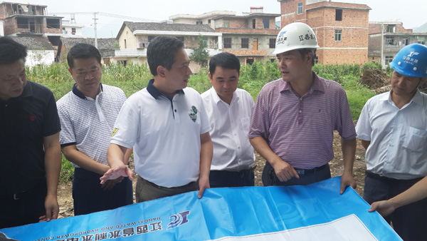 2014年8月8日上午,上饶市委书记陈俊卿一行来到我公司承建的玉山县樟村镇防洪工程检查指导工作。来到施工现场,陈俊卿书记一行顶着炎炎烈日,深入查看并了解了防洪工程的投资规模和施工生产建设情况,随后,项目部经理杨小贵对项目完工后将产生的防洪生态效益作了简单介绍,陈俊卿书记听后非常高兴,他指出,项目部和承建单位要齐心协力,加强安全生产管理,确保工程顺利完工,早日造福当地百姓。最后,陈俊卿书记还询问了施工人员的生活情况,叮嘱项目部既要保证工程施工进度,也要注意防暑工作,让员工家属放心。