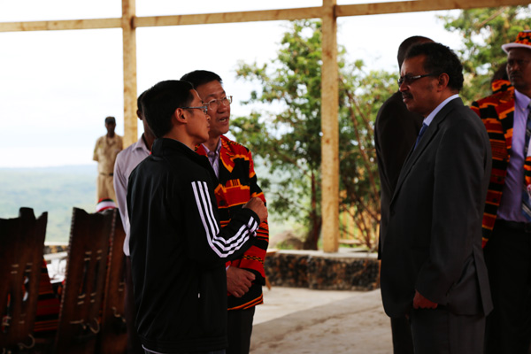 结束对我公司KURAZ项目视察后,覃俭参赞一行返回阿巴门奇市代表中国驻埃大使出席了阿巴门奇市建市50周年庆典活动及捐赠活动。埃塞俄比亚总理海尔玛里亚姆及埃方外交部长接见中方一行,并握手致谢。郭惠明主任就江西水建在埃塞俄比亚的发展情况及南方州KURAZ项目的建设进展情况向埃塞俄比亚总理、外长作了汇报。活动结束后,中方一行还多次分别与南方州政府相关要员进行了会谈。