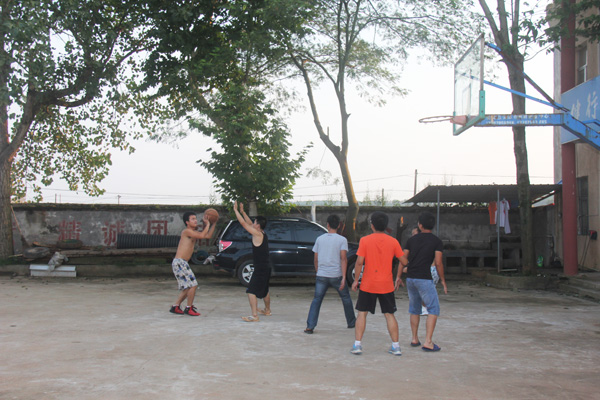“没想到会有篮球场!”蔡丽军笑道。在去项目部之前,同事范斌玉带了一个篮球,本来只是因为舍不得丢掉,没想到真的派上了用场。虽然项目部的生活难免单调了一些,但有了篮球,业余时间就容易打发得多了!新员工们感觉到,公司还是很注重改善项目部员工的业余生活的!