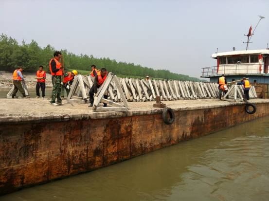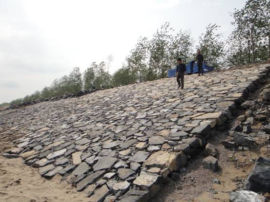 [注:九江长江江心洲固岸应急度汛工程,包括九江县江新洲1标和彭泽县棉船洲1标,由我公司中标承建。工程主要建设内容为抛石、砼四边六面框架、干砌石护坡,项目总投资4000万元。江新洲和棉船洲大堤共保护面积130.39 平方公里,保护耕地12.18万亩,保护人口8.39万人,圩区内土地肥沃,灌溉便利,是江西省的重要棉油生产基地。]