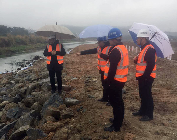 徐洪良总经理一行在仔细查看了施工现场后,认真听取了项目部主要管理人员对前阶段的生产管理情况和后续工作安排的详细汇报。在与项目部管理人员的座谈会议上,徐洪良总经理对前一阶段项目部全体成员克服诸多困难取得的工作成绩给予了充分肯定。同时,指出了在施工管理过程中需加以改善的不足之处,并为后续的工作开展提出了明确的工作目标和要求:一是项目部全体人员要加紧从春节长假的状态中调整过来,快速进入到良好的工作状态;二是项目部要科学谋划、紧盯目标,在制定科学的度汛预案前提下加快施工进度,防范桃花汛对工程施工造成的风险和影响,并要求切实做好安全度汛的各项工作;三是继续狠抓安全生产工作不放松,始终保持安全生产管理的高压态势,切实加强现场安全管理,确保施工安全;四是持续改进质量管理方法,不断提高全员质量意识和管理水平,优质高效地推进项目建设,打造品牌工程。