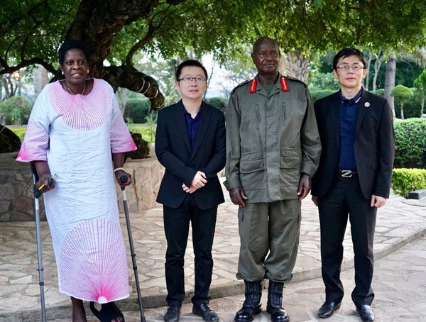 乌干达总统、乌干达驻肯大使与贺翔、李江夏合影