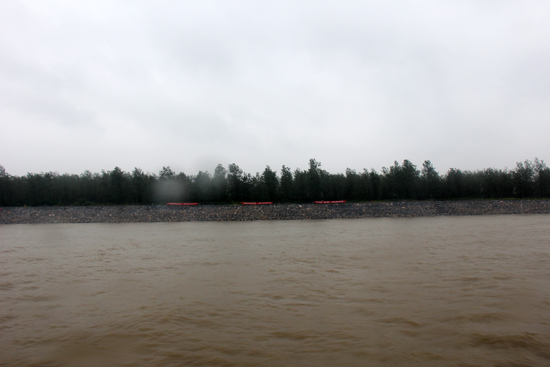 杨丕龙副厅长等冒雨登上快艇甲板察看固岸应急度汛工程