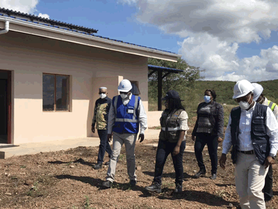 Cecilia女士先后参观了移民房、副坝、溢洪道和水库管理站新办公大楼,并现场观摩了弧形闸门的启闭演示。她边看边问,详细了解各分部工程的建设情况和项目总体进度,认真听取日常施行的各项防疫措施;在得知项目即将竣工的消息后,对承包商的表现表示高度赞赏。她动情地说道,尽管现在新冠肺炎肆虐全球,但是优秀的中国承包商在做好各项防控措施的基础上,仍然坚守战线、迎难而上,充分体现了履约精神和奉献精神,值得尊敬!她表示,也许疫情将持续一段时间,但是只要承包商有困难,就要毫不犹豫地向政府表达,公共工程部永远是承包商坚强的后盾。她强调,业主国家水务局和承包商要更加精诚团结,充分估计疫情可能造成的各类影响,谋划在前、全盘统筹,以缜密的防控措施和有力的生产行动站好最后一班岗,如期实现项目移交和运营,为300万首都人民带去生命之水。