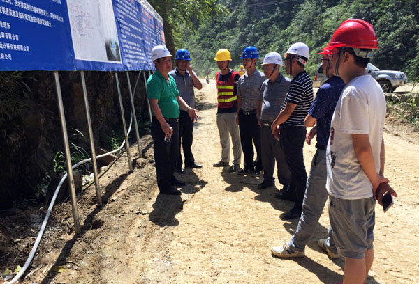 8月7日,公司董事长王元旦、首席专家郭洪有、贵州分公司经理张艳娟等一行冒着炎热酷暑,前往贵州省望谟县新屯水库工程视察指导。