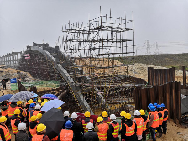首日,学习团冒着寒风和细雨,先后参观了西干渠三区地下顶管技术现场、渡王家渡拱式渡槽技术现场,一分干渠曾家渡碗式渡槽完工段。彭灿华、曾俊平、马小毛等项目管理人员,先后就技术特点、质量安全控制要点、技术方案比选、经济效益分析等,向学习团一行作了介绍。