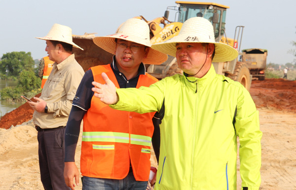 在块石戗堤施工过程中,公司党委书记,董事长王元旦同志带领的专家组头顶烈日、不辞辛劳、不顾风雨带领技术组成员日夜坚守封堵一线,要求测量组实时监测决口水位、水深、流速、块石戗堤有无形变等情况;实时修正戗堤进占轴线;在7月16日晚9时戗堤龙口形成,专家组成员们都在龙口现场指导1m³钢筋笼、3T砼预制块的抛投,保证龙口顺利合龙。