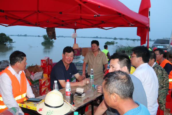 与此同时,公司总部组织召开了抗洪抢险动员大会。全体员工积极响应,纷纷报名,成立了一支30余人抗洪预备队。当日上午,预备队火速赶往一线支援,为保护国家和人民财产贡献一份力量。