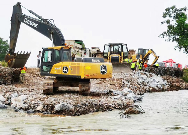 整个封堵工作共动用水建公司400余名施工人员;调配挖机12台、装载机5台、推土机2台、运输车216台;调配块石约3万立方米、卵石约2500立方米、粘土约9000立方米、1立方米钢筋笼260多个、3吨重混凝土块160多块。