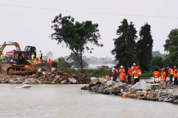 7月13日,公司第一时间成立决口封堵工作指挥部,下设技术组、施工组、物料组、后勤组、安全组五个组,并开展决口封堵前期准备工作。