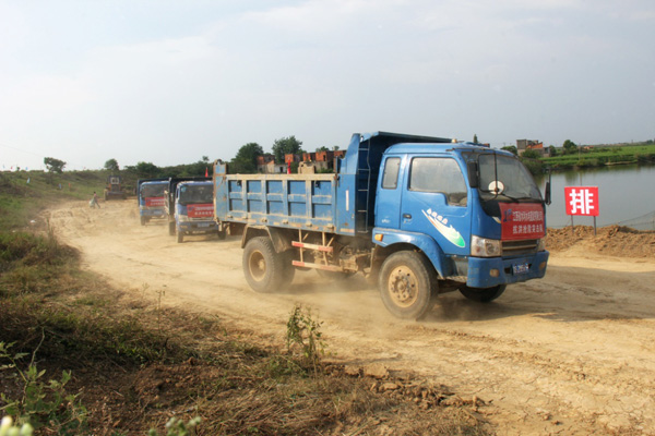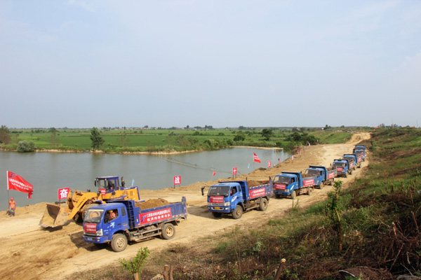 受前期连续强降雨及长江洪水倒灌、顶托影响,九江市河湖水位长时间处于超警戒水位状态,导致该地区防汛形势十分严峻,圩堤险情随时可能发生,特别是堤脚处有池塘的圩堤更易出现险情。为确保庐山市沙湖山圩堤长期稳固,我司在接到该市防汛指挥部的除险加固任务后,立即派遣抗洪抢险突击队前往现场进行抢险,以稳固圩堤,确保圩堤内村庄百姓及农田安全。经过现场勘查,突击队决定沿着圩堤脚有池塘的地段填出一条长约1公里、宽20米的压浸平台进行加固处理。抢险方案确定后,公司迅速组织了3台挖掘机、2台装载机、36台自卸汽车等机械设备及40多名作业人员顶着炎炎烈日进行施工,力求在10天内完成抢险任务,确保圩堤安全。